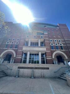So, listen to this. So we go, I had to run into the grocery store right by the courthouses. It’s actually called Courthouse Commons. I had to go, I was going to make tacos for dinner last night because Landry’s boyfriend was coming over, and I had to go get some more hamburger, so, um, and also some ice cream. So we pulled into the parking lot. Mike drops me off at the “Harris Teeter.”