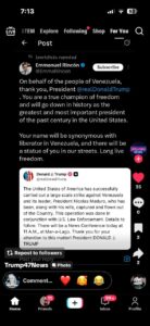 Caption: BREAKING: Maria Corina Machado just said she has FULL CONFIDENCE in President Trump liberating all of Latin America from Communism