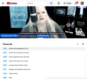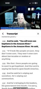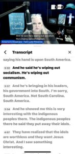 Transcription of the word that the Holy Spirit gave to Annamarie Strawhand, which she delivered during her broadcast of Life in the Faith Lane on December, 17, 2025. ANNAMARIE: “ And He showed me, He showed me these evangelists and these missionaries, and He showed me like from a hundred years ago, and all the good seeds that they had sowed bringing Christ to the people there, and He said now is the harvest of these faithful ones who have been going to South America over the last hundred years. And He said you will even see baptisms in the Amazon River – baptisms in the Amazon River! He said it’ll look like people are just, they don’t even care. They won’t even care about barracudas or snakes or anything like that. These people are going to want to get baptized. And the Lord is saying His hand is upon South America, and He said He’s wiping out socialism. He’s wiping out communism, and He’s bringing in His leaders, His government into South – I’m sorry, South America, not South Carolina, South America.”