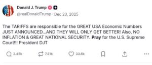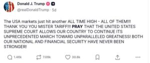 “Just because I won in a HISTORIC landslide and have unleashed the Golden Age of America, THAT DOESN’T MEAN WE CAN TAKE OUR FOOT OFF THE GAS!”