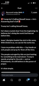 Annamarie Strawhand: I agree with this statement and discern the same as Reverend Jordan Wells post on X @wellsjordan89710 Trump Isn’t Calling Himself Jesus — He’s Answering God’s Call