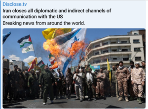 JUST IN – Iran closes all diplomatic and indirect channels of communication with the U.S., suspending the exchange of messages, following Trump’s threat to kill Iran’s “whole civilization.”