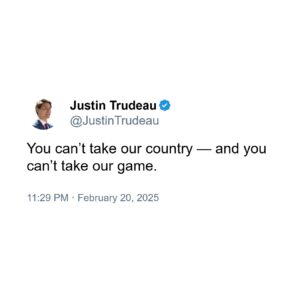 Caption: 🇨🇦Justin Trudeau is being DUNKED ON HARD after he previously said — “You can’t take our country — and you can’t take our game.”