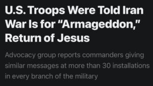 Caption: NEW – U.S. troops were told the war against Iran is for “Armageddon,” and the “Return of Jesus.”