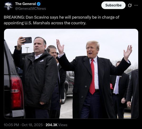 Faith Lane Team: Look at this Coach, Dan Scavino will be personally in charge of appointing U.S. Marshals all across the country.