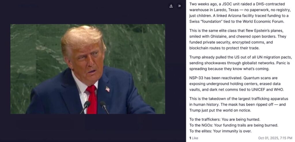 Trump stared down the architects of this system and said: “Any system that results in the mass trafficking of children is inherently EVIL.” This wasn’t just a speech — it was a global indictment.