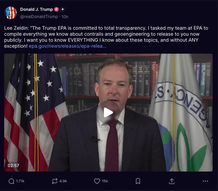 Caption: President Trump highlights EPA Chief Lee Zeldin’s investigations into contrails and geoengineering.