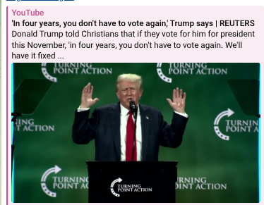And then the Lord also gave me a prophetic word. He said President Trump …. This was a couple of months ago. President Trump will sign an executive order for the bells, the bells to be returned to the churches and to the city town halls, and the bells will ring again on the hour and on Sundays.