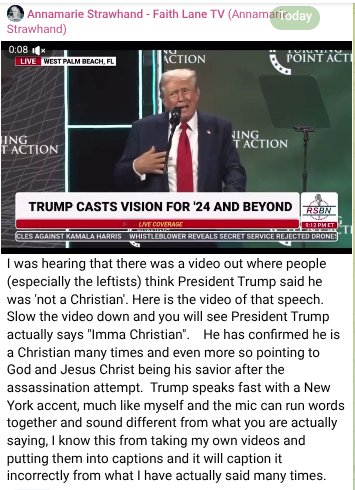 And I’m telling you right now, President Trump is doing what we call a soft reveal of this, you know the Trump Kennedy, Trump Kennedy, Trump Kennedy, by naming, right, the Kennedy Center Trump Kennedy. This is all, this is being done by the good military as well. People say to me, “Well, why isn’t Pam Bondi doing anything?” Because the military is, is … President Trump … We’re, we’re still under this whole military brilliant plan of God, y’all, okay? And the military is dealing with most of this. So there isn’t much she can do. Just pray for her.