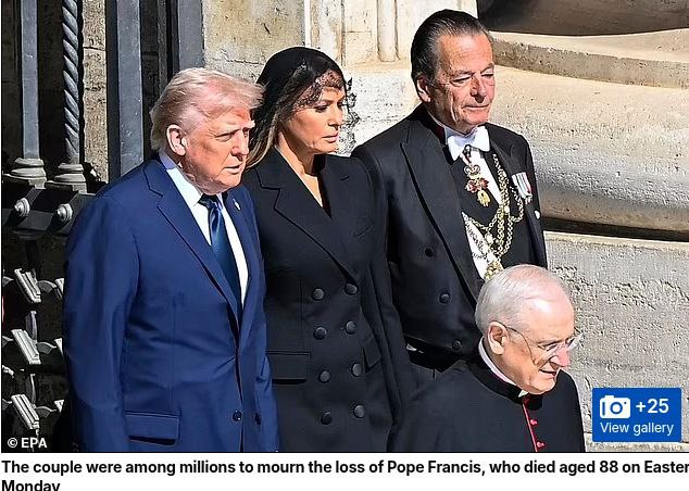 THE LAST TIME MELANIA WORE THE LONDON FOG TRENCH COAT WAS AT THE VATICAN FOR THE POPE’S FUNERAL