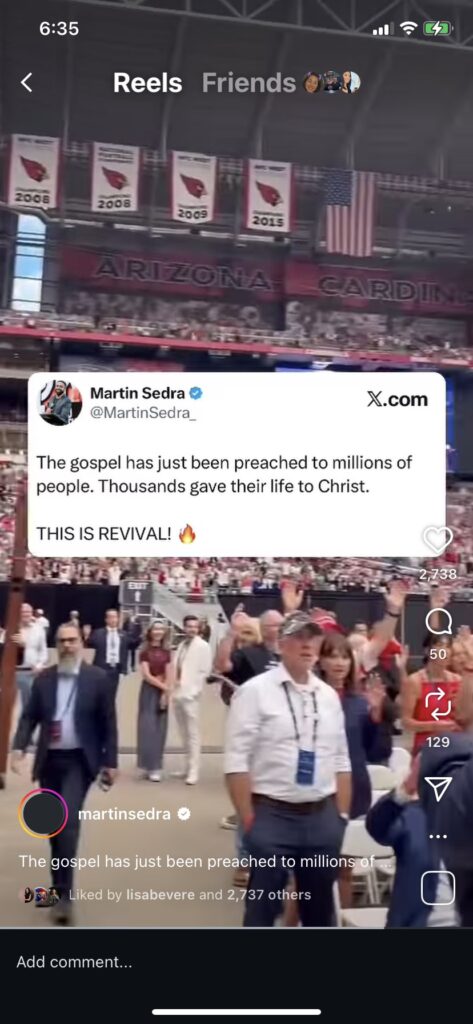 Caption: AMAZING: Tens of thousands singing in worship all at once during Charlie’s event. Breathtaking.